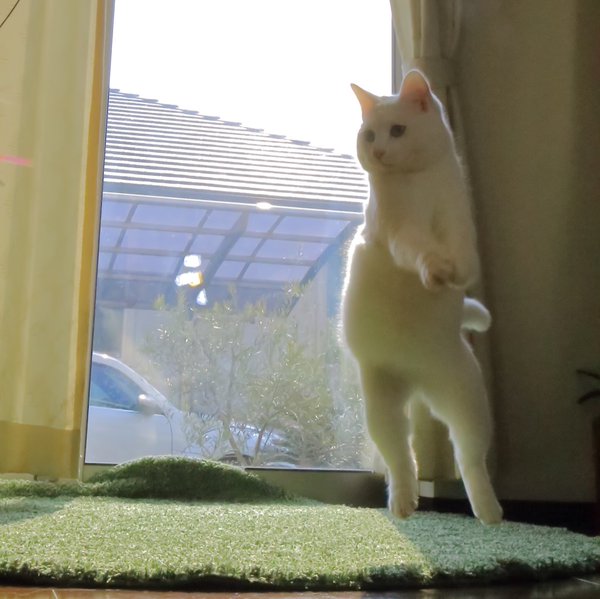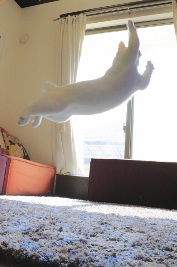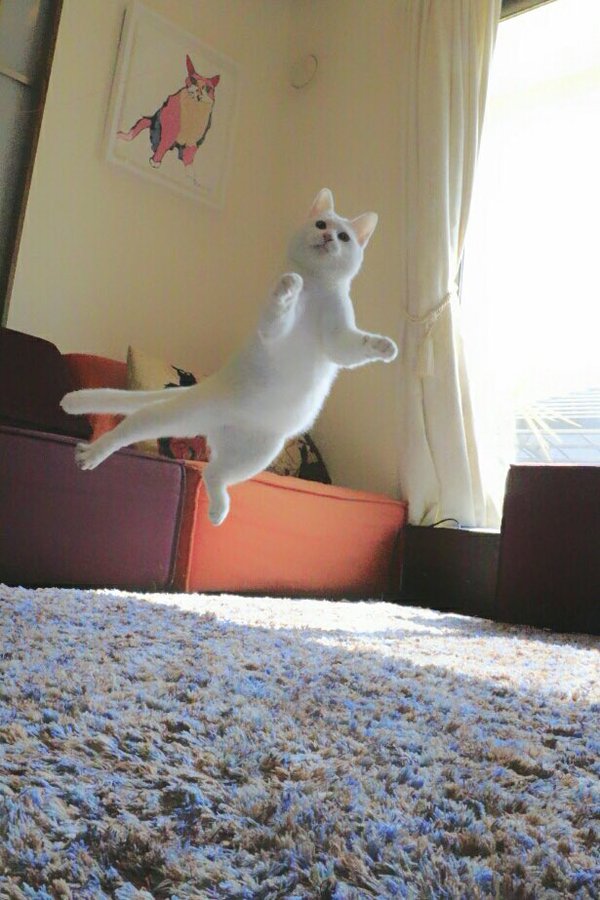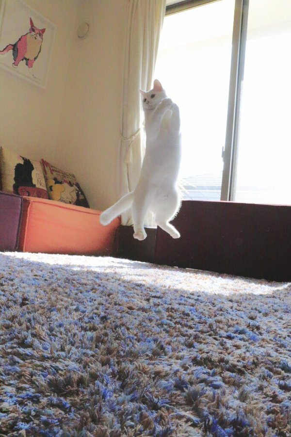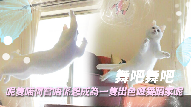 嘩,睇下佢跳得幾高,幾離地,就算佢跳起嗰陣隻腳都仲有動作㗎!睇相呢隻貓嘅舞姿真係冇得輸,係差咁啲背景音樂啫!