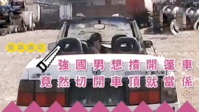 未見過呢款車?所以話你真係未見過大蛇屙尿,架車係呢個強國人自己搵咗架廢鐵返嚟,強行劏開個車頂整㗎!嗱話咁易就變咗架開篷車出嚟喇,睇嚟呢個世界上真係冇嘢會難到強國人呀下。