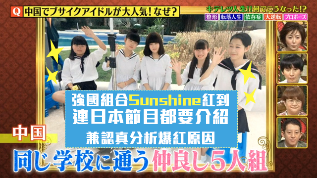 係咪正先?嗱,你哋唔好話唔知呢幾條女係邊個呀,佢哋咪早幾個月受到大家熱烈討論嘅強國青春校園女子組合「Sunshine」囉!聽講佢哋而家喺強國好高人氣㗎,微博仲有成五十二萬個粉絲?~紅到連日本電視節目都要介紹佢哋呀!!!