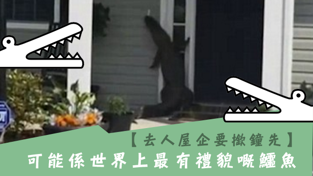 呢隻鱷魚毛啦啦出現喺美國南卡羅來納州嘅民居,仲想走入去人哋屋企?呀,不過阿鱷魚就表示:媽媽教落入人屋企要撳鐘先,所以呢就成隻企咗起身。