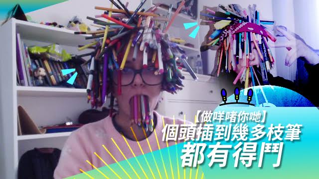話說Lauryn有一日本身係想溫書嘅,點知唔知哪來的idea 突然好想試下自己個頭仔可以插到幾多枝筆,於是就開始玩筆喇,仲post埋相上twitter呃like?!