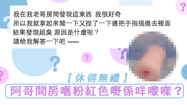 毛毛不嬲都係一個好奇寶寶嚟,不過點好奇都唔及呢個來自台灣嘅好奇寶寶。話說佢有日喺阿哥間房度無意中發現咗嚿粉紅色嘢,睇件嘢奇L怪怪咁,咪拎嚟望下囉!點知一拎上手就件嘢發現好臭喎......唔通佢阿哥收埋咗件粉紅臭豆腐喺房?