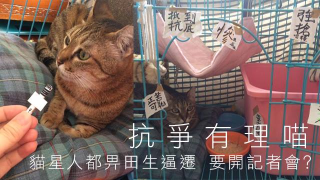 乜家陣田生連貓籠都收咁冇陰公咩,做咩搞到喵星人都要貼晒橫額,仲要開晒記者會咁呀?喵星人都要逼遷?慘無貓道呀喂!