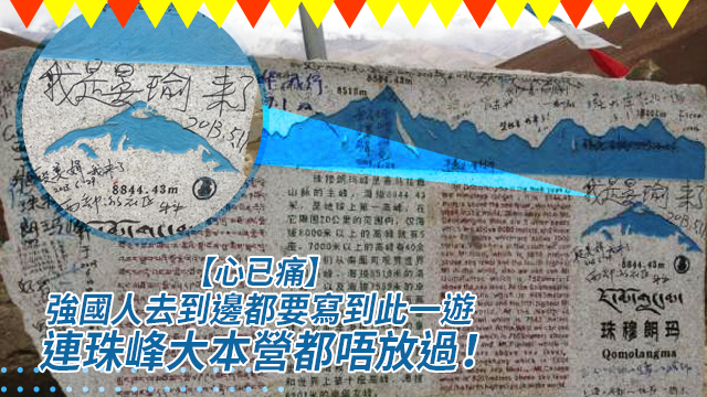 不過老老竇竇,強國人對於畫花公物呢樣嘢真係好執著,爬到上去珠峰再留名刻字你估易㗎?