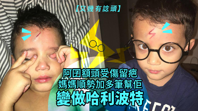 再戴埋副圓形黑框眼鏡,一秒還原哈利波特真身?冇難度啦!仲順個靚便「去去疤痕走!」?喎!咁有諗頭嘅計仔都畀呢位阿媽諗到,今次阿媽加一分呀喂!