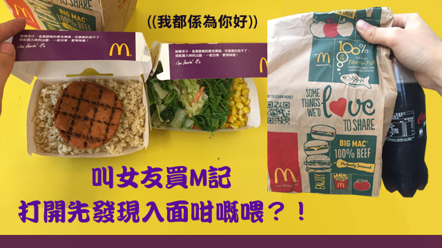 其實是咁的,阿女朋友仔係一心一意想整蠱呢個淨係食肉唔食菜嘅男朋友嘅,於是咪特登去M記買啲盒呀袋呀咁,跟住再偷龍轉鳳,將入面變成素食便當,最後仲送埋去人哋公司門口……嘩,真係用心良苦!