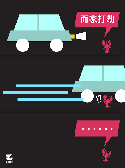 睇真啲,原來個惡霸,係隻……小龍蝦嚟喎。相信小龍蝦你都聽講螳臂擋車嘅故事㗎啦,但都夠膽企喺馬路中間擋車,勇氣可嘉呀!