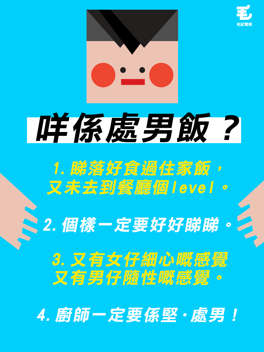 料理咋嘛,其實毛毛都識整㗎。唔知跟唔跟到處男飯頭3個要求,不過第4項就肯肯定match到!