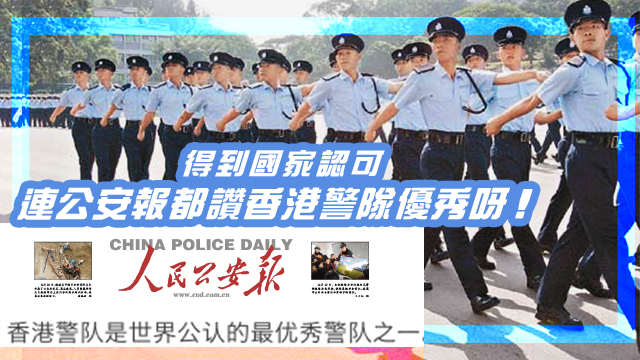 話說中國公安部嘅《中國人民公安報》發表咗篇文,讚香港警隊係「世界公認的最優秀警隊之一」呀!計毛毛話,最就最,邊有之一!