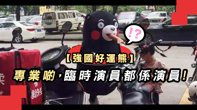 可能好運熊就係知自己冇熊本熊咁受歡迎呀,所以就諗到一條好橋,學熊本熊咁做埋啲騎尼嘢引人注意!偷睇裙底、PK、扮萌呢啲熊本熊都做過晒喇,係得穿崩未試過!好,好運熊就試下穿崩啦!