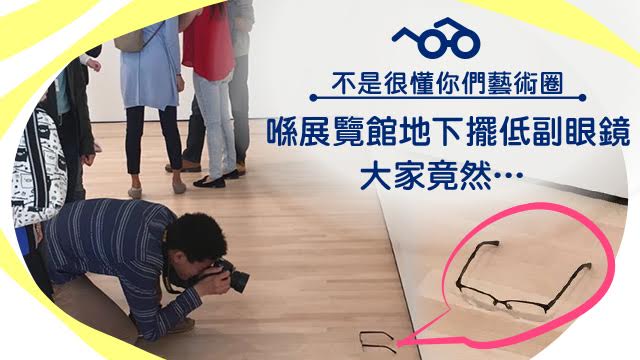 藝術嘅嘢,就係咁難明,咁不可思議,好特別嘅嘢又可以係藝術,好普通嘅嘢又可以係藝術。唔信?毛毛又帶你去睇睇呢個展覽!成班人都圍住地下副眼鏡,流露住既期待又怕受傷害嘅神情,好認真咁去欣賞緊佢!