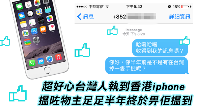 結果佢淨係知部iphone嘅購買地區好似係港澳地區,不過,佢仲未死心,決定開post問下大家知唔知仲有咩方法可以搵到物主。有網民就教佢試下將張sim卡插落自己部手機度睇下電話號碼係咩……最後,佢終於成功聯絡到物主喇,原來物主係一位來自香港嘅吳太呀!!!
