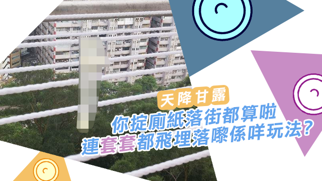 老老竇竇,你掟廁紙呀、煙頭呀呢啲嘢都好濕碎啫,最多咪燒著間屋囉,好小事啫係咪先。但你連個有幾千萬個子孫嘅套套都掟埋落嚟,仲要啱啱晾住喺個晾衫架度,做咩事先,攞景定贈興呀而家。