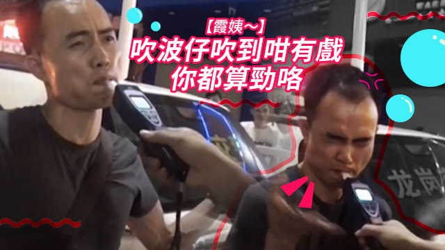 話說呢個強國男因為懷疑醉駕,所以畀盡責嘅公安截停咗要佢吹波仔。估唔到咁樣截一截,就將佢嘅表演細胞由外到內,再由內去返外咁,完完全全咁發掘出嚟喇!佢先係輕輕咁咬一咬,練下口感先: