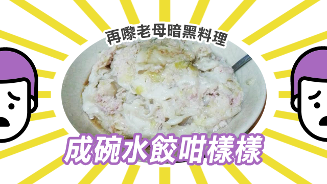 嘩,是咪阿仔你冇畀家用,激到阿媽嘔,仲要用嘔吐物做餸呀?!原來呢碗係老母暗黑水餃,真係失敬失敬。