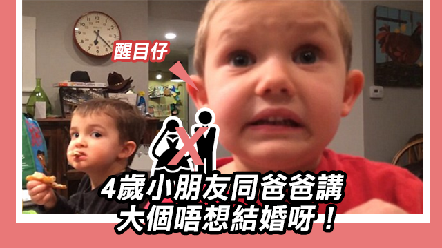 毛毛細細個就講過:「大個唔會同女仔玩!」果然願望成真,冇女仔同毛毛玩⋯⋯不過外國就有個4歲嘅小朋友,可能佢鬼仔性格啦,大大聲同爸爸講唔想結婚。