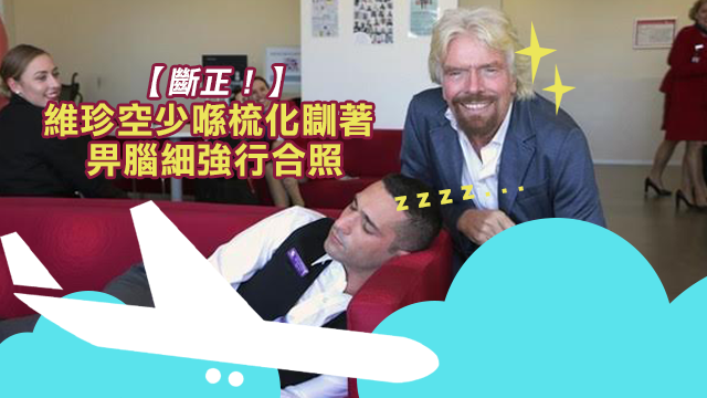 世上有咩慘得過畀腦細捉到自己返工蛇王瞓教,就係畀腦細斷正自己蛇王之餘,仲要畀腦細強行合照,擺上飛時卜呀!嗱嗱嗱,毛毛作為扮工室專業冗員,梗係唔會犯埋呢啲低級錯誤啦,毛毛講緊嘅係呢個維珍航空嘅空少呀!