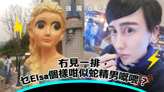 btw,雖然呢位強國elsa公主已經好努力咁向蛇精男學習,毛毛都表示欽敬,但毛毛覺得唯一美中不足嘅係……個下巴未夠尖囉。