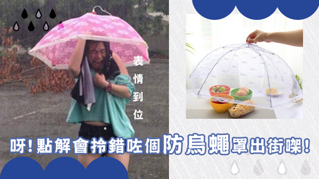 嘩!做咩呢個妹豬面容扭曲到成個鄭嘉穎叫.jpg咁呀?是咁的,話說呢個台灣妹豬知道出面落雨已經帶定遮出街㗎喇,只不過喺佢開遮嘅時候就發現……原來佢自己帶嘅唔係遮,係防烏蠅罩呀!!!