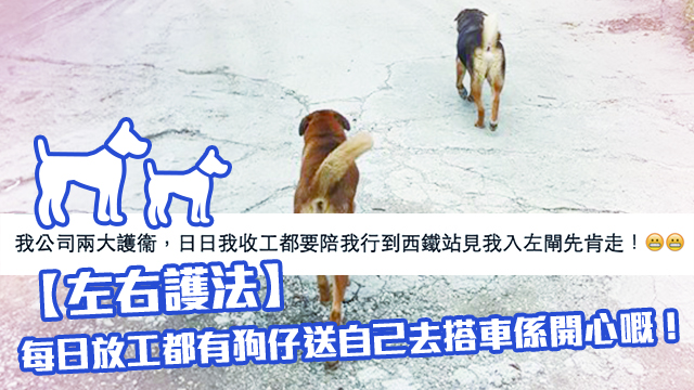 唔好睇小呢兩隻狗仔呀,其實佢哋都係呢個網民間公司養,係佢嘅左右護法嚟,日日都要護送住佢去到西鐵站附近先會走㗎!
