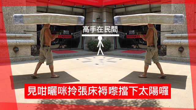 到咗最後嘅高階版喇。嗱呢個階段係需要你有少少功夫嘅底子嘅,好似鐵頭功呀、如來神掌呀呢啲都唔使毛毛多講㗎喇。只要你識功夫,瞓醒之後一嘢頂住張床褥出街,行行街眼瞓又可以即刻瞓落去,到時你仲唔係人生贏家!講明先呀,呢個阿叔識功夫先可以咁做咋,廢青唔好亂學呀知唔知!