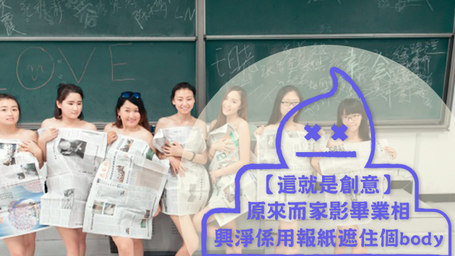 呢班妹豬竟然全部都唔著衫,淨係搵塊報紙嚟遮住個body喎!喂喂喂,你哋咁樣做,叫毛毛點專心返工呀?人嚟,同我執走張報紙佢!另外,其實呢班同學仔除咗《那些年》style同「太子芬蘭浴」style之外,仲影咗好多創意畢業相嘅: