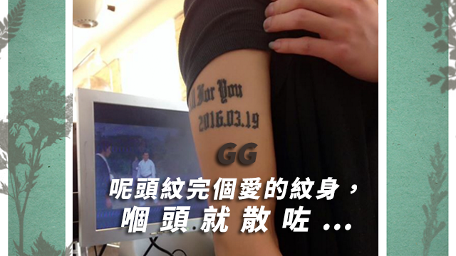聽講好多傻西瓜為咗展示自己對另一半嘅濃濃愛意,都會紋返個愛的紋身~而呢個來自台灣嘅傻西瓜都唔例外,佢紋咗句「All For You 2016.03.19」喺隻手臂度呀!