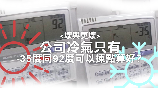 呢位日本網民發現佢公司嘅冷氣好趣緻,只有兩個溫度較嘅啫,一係就凍到-35度,一係就熱到92度,咁即係叫啲員工唔係凍死就熱死啫,好黑心啊~
