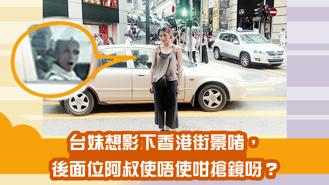 話說有個台灣妹豬最近就嚟咗香港玩,諗住企喺馬路影張懶型嘅街景相啦,點知竟然畀後面個阿叔個「唔L係啩嘴」搶晒fo,搞到佢呃唔到Like喎……