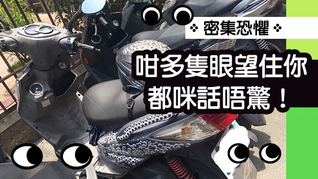 小學雞做勞作嗰陣,一定有用過呢啲識郁嘅眼仔,硬係覺得佢望住自己,望到毛毛毛都扯晒,但估唔到竟然有人會拎佢嚟黐自己部電單車,仲要唔止拎一甩,係拎好L多甩呀!好L多隻眼呀~~~~~~~~~