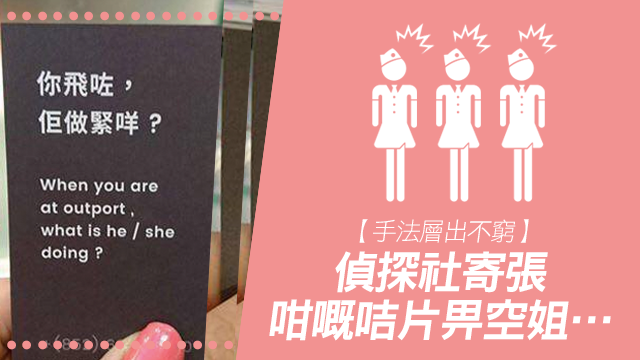 咩人咁大整蠱呀?原來呢張嘢係由一間偵探社寄出嚟,宣傳手法真係層出不窮!不過有啲空姐就表示好反感,當場撕爛佢咁話。