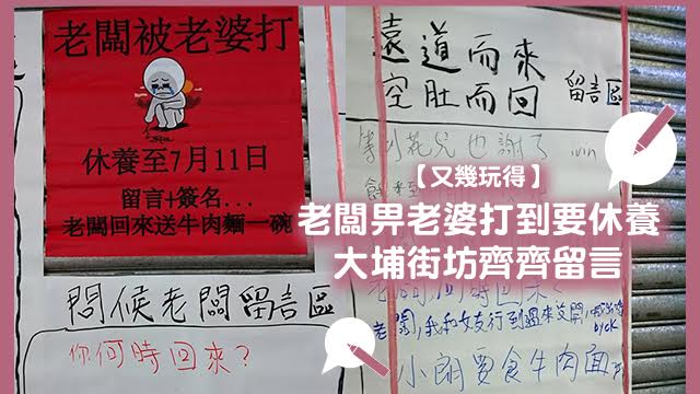雖然老闆講到要休養,好似好大劑咁,但係佢仲可以喺舖頭門口貼到幾塊留言板畀一場嚟到嘅客仔留字畀佢,睇怕應該都唔係重傷嘅!兩公婆床頭打交,情趣嚟嘅~情趣嚟嘅!