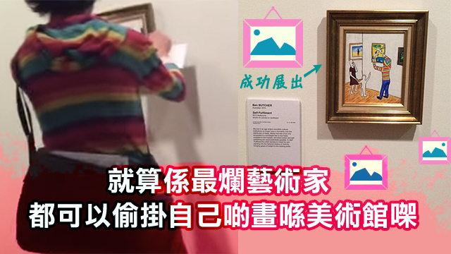 介紹返,呢幅畫叫《自我實現》,而佢喺講解呢幅驚世巨作嗰陣就話,「喺而家呢個資訊流通的年代,任何文化建制都唔能夠再主宰一切,公眾都可以參與其中咁話喎」(毛毛雞腸都唔識一甩,都係谷歌translate㗎咋)!即係無論係佢呢幅畫,定係佢偷偷哋掛喺呢幅畫嘅行為,都係一種藝術呀!