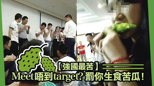 不過,痛,又點呀,腦細會理解嗎?不會,因為腦細只想到自己!強國有間裝修公司就諗到用生啪苦瓜嚟懲罰Meet唔到target嘅員工喇。有員工喺網上爆料,話有40個同事因為Meet唔到target,畀班大粒佬罰佢哋企出嚟當眾生食苦瓜,仲有同事因為太苦食唔落而要罰食多隻呀!