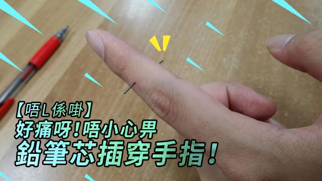 嘩!做咩玩咁大呀!唔小心畀鉛筆芯拮咗少少入手指,就係人都試過啦,但係咁樣樣成支插穿手指,就真係第一次見!隔住個mon都覺得痛呀大佬,仲要驚住整斷咗支芯,留咗一截喺入面就弊傢伙喇!