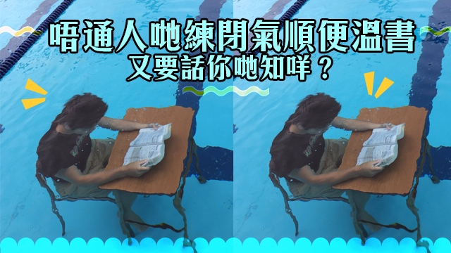不過水底入面唞唔到氣㗎喎,而家仲話要同腥些一齊溫書?咁樣難度會唔會太高呀……以毛毛9估,其實呢個泳池底根本就係冇水嘅,就好似金澤21世紀美術館個「天花板泳池」咁,係幻覺嚟㗎啫,嚇我唔到嘅!嗯!