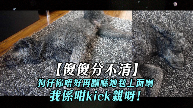 睇真啲,原來係畀屋企隻貴婦狗Stanley kick親呀!話說佢主人有日行行下街見到有張同佢100%match嘅地毯,於是就買咗返屋企啦~可能Stanley都覺得終於搵到同類喇,就日日都糖黐豆咁黐實張地毯~