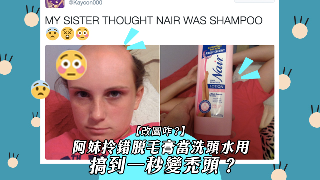 最近,有位外國網民就話自己細妹唔小心將支脫毛膏當咗做洗頭水咁用,搞到佢啲頭髮甩咗一大忽,成個吳焗腸個頭咁款?……嘩,唔係玩到咁大呀嘛?等毛毛同大家睇過睇過!