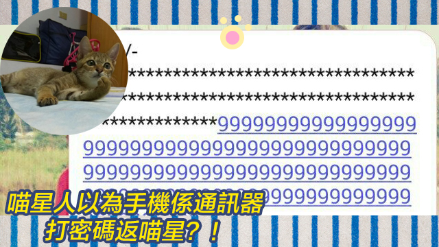 今日仲唔證據確鑿,捉到喵星人打密碼返喵星嘅證據?!雖然喵星人乃係高智慧生物,自命聖上,當人類係鏟屎官,但再鋒利嘅刀,都有生繡嘅日,喵星人終於失手喇!