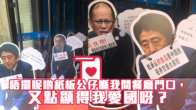 嘩嘩嘩,間餐應竟然自製各國元首向中國跪低道歉嘅紙板公仔,仲將佢哋放晒喺門口呢個咁當眼嘅位置……呢種打飛機吸客嘅方法真係神奇!頂級!超卓呀!