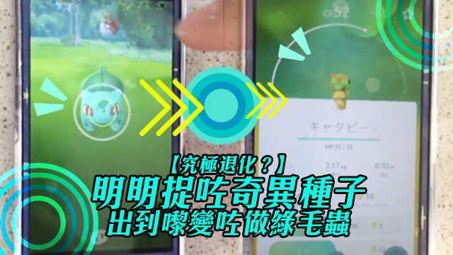 冇奶油吖,明明一開始掟精靈球嗰陣,係堅﹒奇異種子嚟㗎喎!有咩解究成功gotcha,入咗個波之後,就會變咗做綠毛蟲㗎?唔通係究極退化?定係隻奇異種子本身有蟲喺身呀?