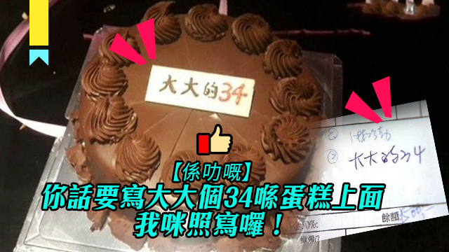 話說呢個台灣媽媽諗住趁自己34歲生日嘅時候,訂個蛋糕同屋企人一齊慶祝,仲講到明話塊生日牌上面要寫住大大個34?!不過可能因為溝通嘅問題,又或者係社會嘅問題,總之個蛋糕最後出到嚟就變成咁樣樣喇……