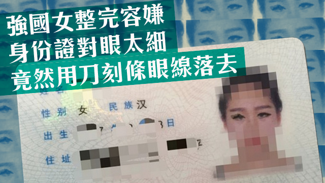 唔知呢個強國女係咪都跟咗蛇精男學嘢呢?事關佢整完容之後,居然嫌自己張身份證張相入面對眼太細,用?刀刻咗兩大條又粗又黑嘅眼線落去呀!當工作人員諗住抹走條眼線嘅時候,佢仲細細聲咁話:「唔使抹喇,我用刀?㗎!」咁樣樣,幾有霸氣呀!好彩,最後佢拎返張舊證出嚟,證明到相中人係佢自己,先至順利過關咋!