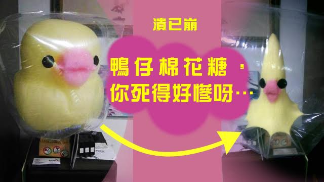 就好似呢個鴨仔棉花糖咁咋嘛,個主人見佢咁打耳,唔捨得食,咪擺住喺度先囉,點知可愛只係佢嘅外表!