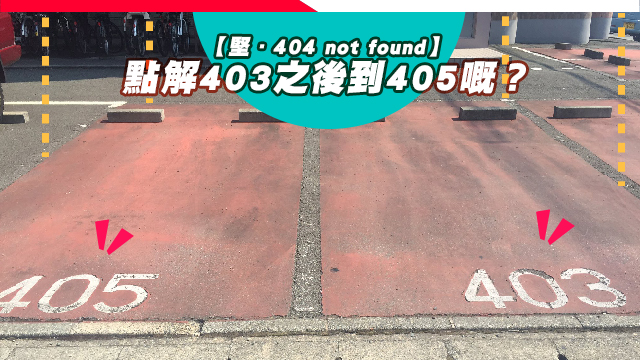 咦,403號車位之後就到405號車位嘅?真係堅.404 not found喎!唔通日本仔都驚4字唔好意頭,所以skip咗404號車位?老老77,其實想搵返個404好容易啫,翻牆咪得囉!一眾強國同胞平時都係咁樣樣翻牆叫人道歉嘅~easy執啦!