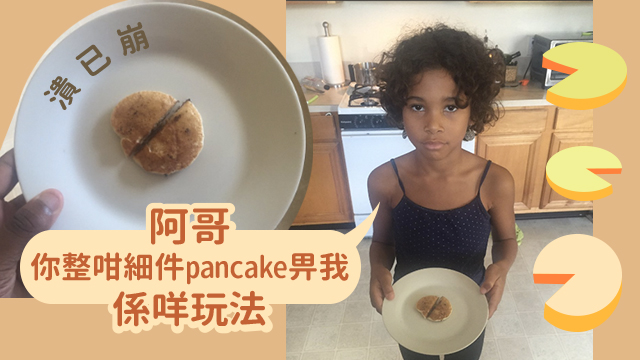 是咁的,話說呢個阿哥諗住整pancake食,例牌就梗係要問埋阿妹食唔食㗎啦!佢仲好細心咁問埋阿妹塊pancake要幾大?喎!一定係個好阿哥嚟嘅啫!而妹妹亦都好識做,話塊pancake幾大都無所謂,於是佢就得到呢塊嘢喇!