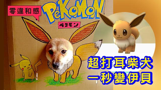 聽講伊貝好難收服㗎,不過唔怕喎,學日本呢個小精靈訓練員咁咪得囉!首先喺紙皮上面畫隻伊貝,再cut返個窿畀佢隻柴犬突個頭出嚟,睇下!伊貝GET!
