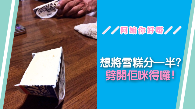 仲有呀,食食下杯雪糕溶溶地仲要撈埋大家啲口水,容乜易愈食愈大杯㗎……學日本呢個嫲嫲咁,一嘢連埋個包裝切開佢咪唔使煩囉!連個杯都分一半,夠晒公平呀!阿嫲你好嘢!不過如果下次多幾個人分又點算先?都係用嚟揸汁最公平!