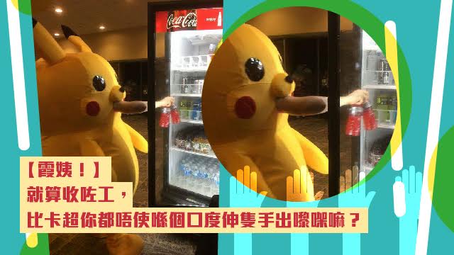 作為打工仔,收工無非都係想relax下,放低個隻面具,做返自己啫。比卡超同我哋一樣呀,一收工就咩儀態都冇,竟然畀人影到佢喺個口度伸隻手出嚟拎嘢飲……