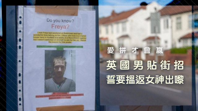 為咗喺茫茫人海之中搵返自己女神出嚟,你可以去到幾盡?英國呢個男人,就決定要拋個身出去……貼街招,希望可以重遇返女神呀!